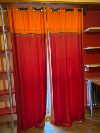 💞 Cortinas de tela con un diseño bordado, como se ve en las fotos. Las medidas son: 145cm de ancho x 250cm de alto ⭐ Como son dos cortinas vienen con dos palos, con 16 anillas cada uno para luego engancharlas a los pasadores (se entregan todas las piezas necesarias) 🎯 Las cortinas tienen alguna pequeña mancha y le han salido bolitas en la parte de abajo, aunque nada muy grave. Por otro lado, los palos (que miden 155cm de largo cada uno, son dos) también pueden tener alguna marquita como se ve en las fotos, aunque de nuevo nada que afecte mucho a su uso. 📍No hago envíos de este producto. Solo Zamora capital.