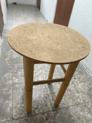 Hola vendo mesa camilla pequeña para decorar cualquier estancia de la casa estructura y patas de madera y base redonda de aglomerado ideal para para cubrir con cualquier tela o faldón decorativo también hago envíos - medidas altura 56 cm tablero 40 cm de diámetro - Tablero de aglomerado. - Patas de madera.