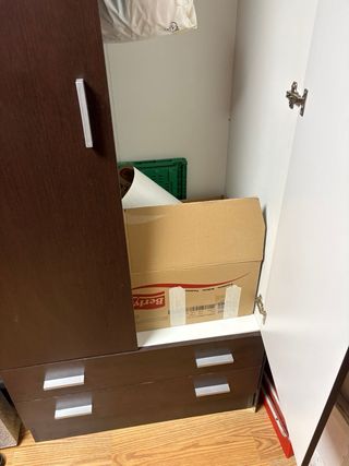 🆕 Armario nuevo a estrenar 🎨 Color: Blanco y madera 🚪 4 puertas frontales amplias 🧰 4 cajones alargados en la parte inferior 🖐️ Tiradores cómodos para fácil apertura 📏 Medidas: 80 x 190 x 50 cm ✨ Ideal para organizar ropa, accesorios y más 📍 Más info: *610, *275, *398*