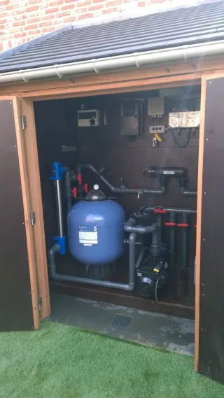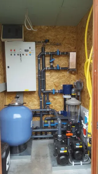 Sistema de depuración para piscinas. - Componentes principales de plástico y metal. - Depósito de gran capacidad en color azul. - Panel de control eléctrico. Depuradoras enterradas o con casetas de obra