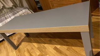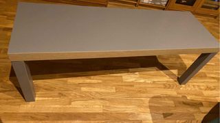 Elegante mesa larga con superficie de cristal. Sirve como escritorio , recibidor esta un poco coja