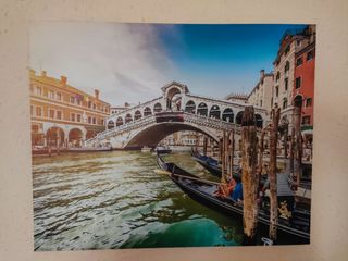 Cuadro estampado del puente Rialto, el más antiguo de Venecia con brillo.