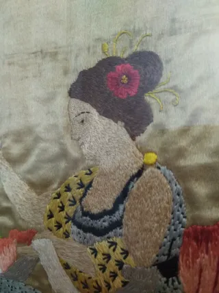 Cuadro bordado seda china s.XIX.