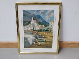 VENDO Cuadro lámina antigua con paisaje de mar pesquero, con barcas e iglesia al fondo. Lámina Japizua ref 551 Lazaroti. Playa con barcos pueblo al fondo. Marco y cristal en buen estado. Con firma de autor Lazaroti. Colgador por la parte trasera. Estado según las imágenes. Medidas en las fotos. Perfecto para decoración vintaje o atrezzo atrezo