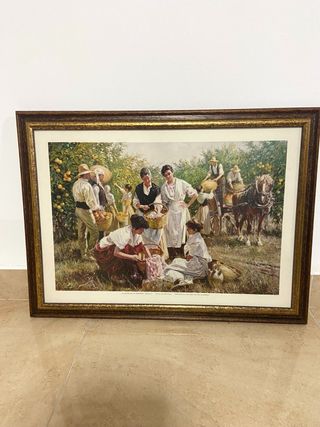 precioso cuadro , en perfecto estado , muy bonito , cogiendo naranjas antiguamente ,medidas 55 x 40 cms