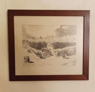 Precioso cuadro vintage con un diseño antiguo. Es una pieza única y decorativa, ideal para darle un toque clásico a tu hogar. - El marco es de madera dorada. - La imagen está impresa en papel de alta calidad. - Perfecto estado de conservación.