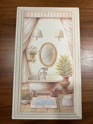 Dos cuadros rectangulares con motivos de aseos antiguos.