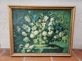 Cuadro antiguo jarrón y flores, reproduccion arell