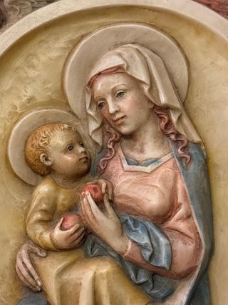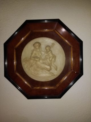Cuadro bajorrelieve alabastro Virgen Niño. Orejudo
