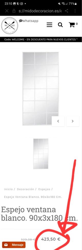 NUEVO REBAJA Espejo ventana industrial cuarterones
