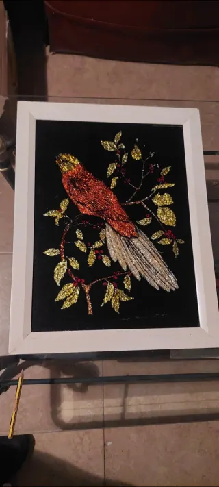 Vendo cuadro muy antiguo tallado en tela con marco de madera pintado en dorado, en perfecto estado, tal cual se ve en las fotos. Preguntar cualquier cosa sin compromiso.