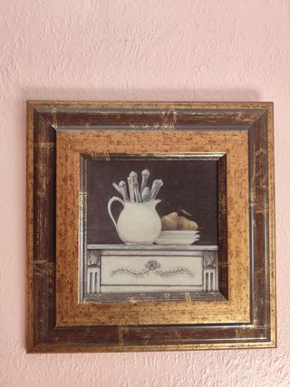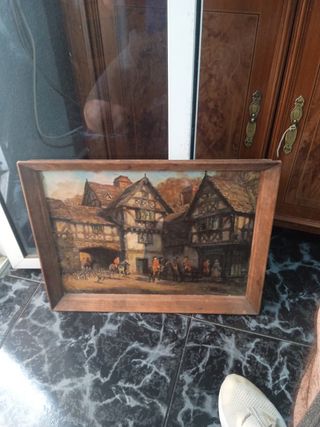 Se vende este cuadro bonito y antiguo de lámina sobre tabla. Medidas: (Medidas con marco: 41,05 cm de alto X 34,05 cm de ancho) y (Medidas de la lámina sobre tabla: 30 cm de alto X 23 cm de ancho).