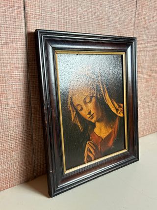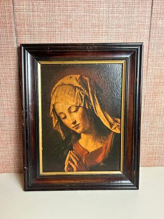 Cuadro decorativo antiguo de Virgen sobre lámina. Buen estado general con signos del paso del tiempo. Las fotos son parte importante de la descripción. Medidas 41 x 3 x 52 Disponible en nuestro almacén. Muchos más artículos en nuestra tienda en Triana, Sevilla. Realizamos envío. No te pierdas nuestra sección REBAJAS en nuestra web.