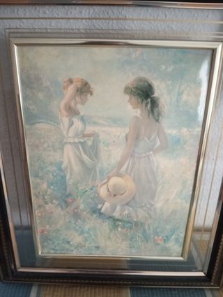 Preciosos cuadros decorativos con un diseño encantador. - Marco de madera con detalles dorados. - Cristal protector. Medida 40 x 50 1 x5€ los 2 x7€