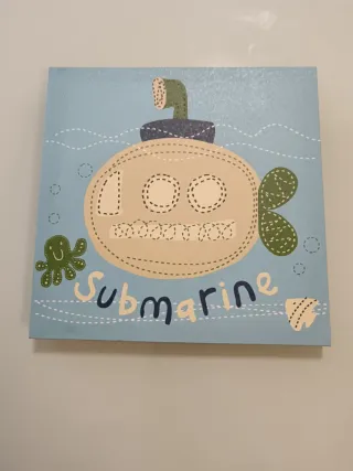 Dos bonitos cuadros decorativos para habitación infantil, con diseños de un submarino y un tren. - El cuadro del submarino tiene fondo azul claro y un simpático pulpo. - El cuadro del tren tiene fondo verde y un tren con un león. - Se venden juntos o por separado. Precio por unidad Medidas Alto: 28cm Ancho: 28cm Grosor: 2cm