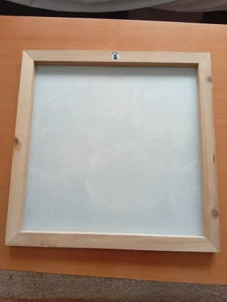 Este cuadro decorativo presenta un diseño abstracto en tonos naturales, enmarcado en madera. - Marco de madera clara. - Papel con textura sutil. - Composición geométrica.