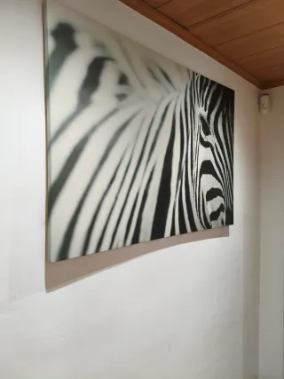Conjunto de dos cuadros decorativos con un diseño moderno Set de dos cuadros decorativos con marcos, frontal de plástico. - Motivo de retrato tribal. - Motivo de cebra. Medidas en las fotos. Marco IKEA ROLDAM. 10