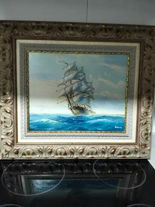 2 Cuadros decorativos con escena marina y barcos.Se pueden vender sueltos 75 euros cada uno - Pintura al óleo. - Marco incluido.
