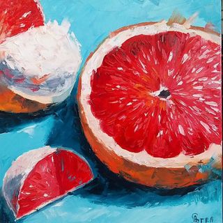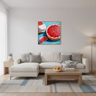 Obra original pintada al óleo sobre lienzo. Una composición fresca y vibrante con pomelo rosa que aporta sensación de luminosidad, energía y alegría. El cuadro será un toque decorativo perfecto para la cocina, comedor o salón, creando un ambiente cálido y acogedor. Los tonos delicados y vivos, junto con la textura natural del óleo, le dan profundidad y expresividad a la obra. Tamaño: 50×50 cm Técnica: óleo sobre lienzo Estado: Nuevo Artista: Anna Stratovich Obra única y original