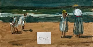 Pintura al óleo original de Demetrio Susín. Cuadro al óleo original, tela encolada sobre tabla, con materiales de calidad superior. Pieza única, sin enmarcar. Firmado Susín, profesor de dibujo y licenciado en Bellas Artes. 13x18 cm. - Representa una escena de playa con figuras. - Firmado por el artista.