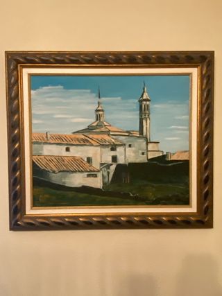 Cuadro al óleo paisaje pueblo