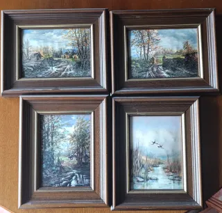 Lote de cuatro cuadros con escenas de paisajes campestre. Tags no leer, marco, óleo, pintura, regalo