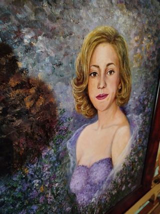 Precioso cuadro original de Maruchi Ripoll, pintado en el año 2002. La obra representa un retrato femenino rodeado de flores. - Firma del artista visible. - Marco de madera incluido. Artista reconocida No envio sin previo pago