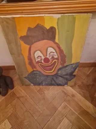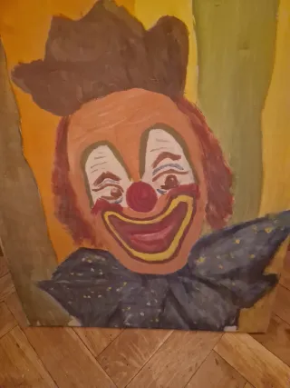 Cuadro decorativo pintado a mano con motivo de payaso, ideal para decoración vintage, retro o artística. Pieza original única, perfecta para dar personalidad a cualquier espacio.