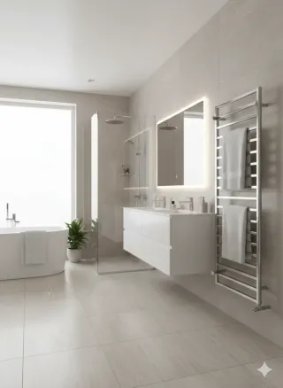 Vendo radiador toallero de máxima calidad con acabado cromado de alto brillo. Diseño moderno de lamas cuadradas/planas, ideal para dar un toque elegante y funcional al baño. Estado: Nuevo, nunca instalado (conserva protectores). Material: Acero de alta densidad con acabado cromado premium (resistente a la corrosión). Incluye: Cuerpo del radiador y soportes de pared a juego. Nota: No incluye las válvulas de conexión (se adquieren aparte según el tipo de instalación de tu vivienda). Valorado en 450€
