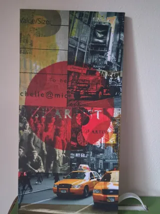 Vendo este precioso cuadro en lienzo con una perspectiva espectacular del edificio Chrysler en Nueva York. Combina tonos cálidos, púrpuras y detalles abstractos en rosa que le dan mucha personalidad. Estado: Impecable, como nuevo. Medidas: 28,1 cm de alto x 26,5 cm de ancho. Formato: Lienzo sobre bastidor de madera (listo para colgar directamente sin necesidad de marco). Estilo: Arte moderno / Pop Art / Decoración urbana. Ideal para salón, dormitorio o despacho. Es ligero y muy fácil de colocar.