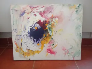 Cuadro abstracto pintado a mano con una explosión de colores vibrantes. Una pieza única para decorar tu espacio. - Medidas: 50x40 cm. - Técnica mixta.