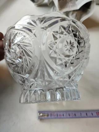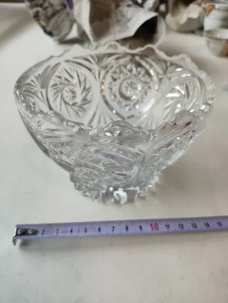 Elegante cuenco de cristal tallado, perfecto para presentar frutas o como pieza decorativa. - Diseño intrincado con detalles tallados. - Base sólida y estable. - Borde con acabado ondulado. - Entrega en mano en Cuarte de Huerva