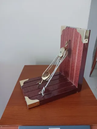 Set de dos sujetalibros con diseño náutico, perfectos para dar un toque marinero a tu hogar. - Fabricados en madera oscura y detalles en latón. - Incluyen poleas y cuerdas decorativas.