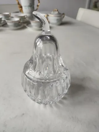 Este azucarero de cristal tallado tiene una encantadora forma de pera. - Diseño en forma de pera. - Cristal tallado con detalles. - Tapa a juego. - Entrega en mano en Cuarte de Huerva