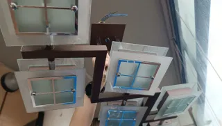 Elegante lámpara de techo con un diseño moderno, perfecta para dar un toque especial a tu salón o dormitorio. Combina a la perfección con diferentes estilos de decoración. - Estructura principal en tono marrón. - Paneles de cristal translúcido. - Detalles metálicos. - Incluye bombillas led