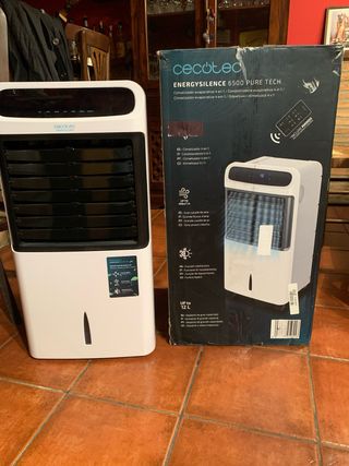 Climatizador evaporativo Cecotec Energysilence 6500 Pure Tech en perfectas condiciones. Incluye mando a distancia. - Capacidad del depósito de hasta 12 L. - 4 funciones en 1: climatizador, ventilador, purificador y humidificador. - Mando a distancia incluido.