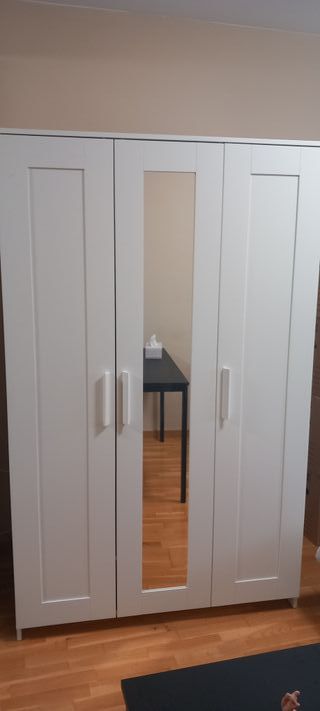 Armario de tres puertas de la serie BRIMNES de IKEA. Su diseño moderno y color blanco lo hacen versátil para cualquier habitación. - Medidas: 117x50x190 cm. - Acabado en madera conglomerado. No se hacen envíos, se debe recoger montado.