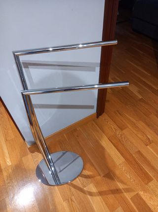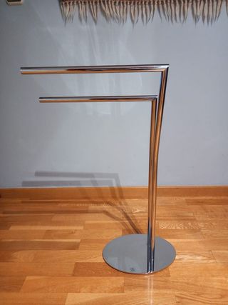 Este toallero de pie aporta un toque de estilo a cualquier espacio. - Diseño moderno y elegante. - Base circular estable. - Acabado brillante. - Para 2 toallas - Medidas: altura 80 cm x anchura 50 cm