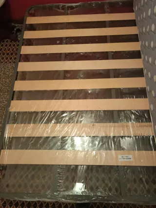 Se venden dos somieres para base de cama. Nuevos. Recoger en Tarazona. Se pueden vender individuales. - Estructura metálica resistente. - Láminas de madera.