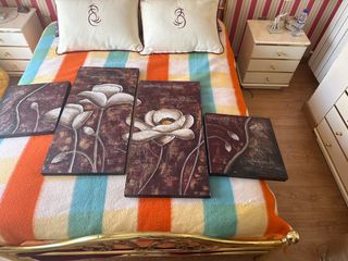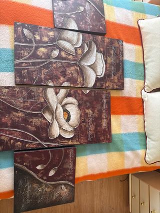 Conjunto de cuatro lienzos con un diseño moderno de flores. Cada pieza aporta un toque artístico único. - Composición de 4 cuadros. - Motivo floral abstracto. - Ideal para decorar cualquier espacio.