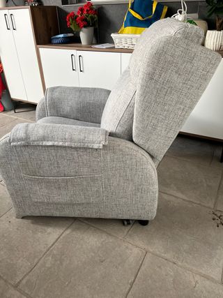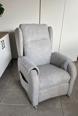 Sillón reclinable con motor y doble reposapiés. - Mecanismo de elevación para facilitar el acceso. - Bolsillo lateral para mandos o revistas. Se ha comprado para navidades para mí abuelo y lo hemos tenido que llevar a residencia, está impecable. Precio original: 1100€