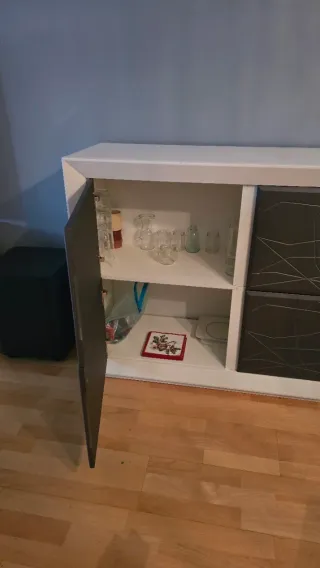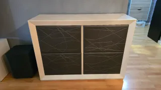 Elegante aparador con un diseño moderno y limpio. - Acabado en blanco y antracita. - Cuatro puertas frontales.