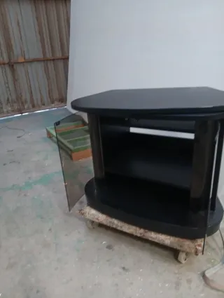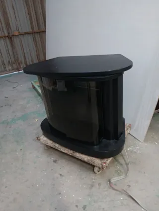 Mueble para televisión con un diseño moderno y elegante. - Acabado en negro brillante. - Superficie superior curva. - Base con ruedas para fácil movilidad. Recoger en Cuarte de Huerva (Z)