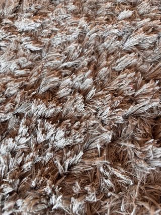 Alfombra de pelo medio largo en tonos beige y marrón. Aporta calidez y confort a cualquier estancia. - Material de poliéster suave al tacto. - Diseño moderno y acogedor. Se vende por cambio. Requeriria pasar por tintoreria.