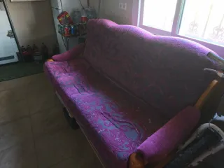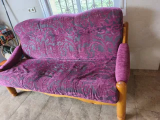 Venta de dos sofas, solo recogida en domicilio Cubas de la Sagra (Madrid) NO REALIZAMOS TRANSPORTES Sofa de 2 plazas: 150 x 90 x 90 cm Sofa se 3 plazas: 205 x 90 x 90 cm Cojín decorativo a rayas incluido. La tela se ve desgastada, requiere limpieza de tapizado o cubrir con una tela. Los dos por 40€ Los hemos movido al garage a pie de calle, para facilitar su carga.
