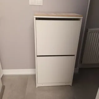 Mueble de almacenamiento con un diseño moderno y elegante. - Acabado en blanco con detalles en madera. - Estructura robusta y duradera.
