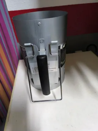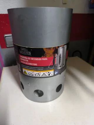 Chimenea de encendido para barbacoa de la marca Grill Meister. Facilita y acelera la formación de brasas. - Diseño cilíndrico con perforaciones. - Asa para transporte.