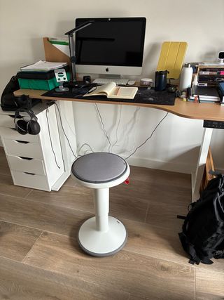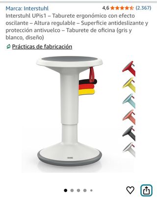 Taburete ergonómico con efecto oscilante – Altura regulable – Superficie antideslizante y protección antivuelco – Taburete de oficina (gris y blanco, diseño). Precio original 150€. Asiento dinámico: gracias a la superficie de apoyo redondeada, la silla giratoria se puede mover en todas las direcciones y ofrece la máxima flexibilidad. Protege la espalda: el ajuste de altura y la dinámica ergonómica del asiento ayudan a prevenir el dolor de espalda incluso sentados durante mucho tiempo. Uso versátil: perfecto como taburete de escritorio o taburete de oficina. Hasta 120 kgs y 450-630mm altura max. Regalo cojín específico (23€)