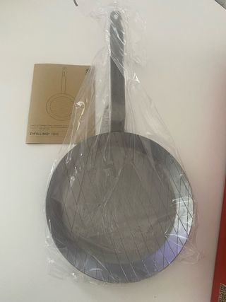 Sartén de hierro fundido de 28 cm de diámetro. Incluye manual de instrucciones. - Diseño con patrón de rombos en el interior. - Mango largo para un agarre cómodo.