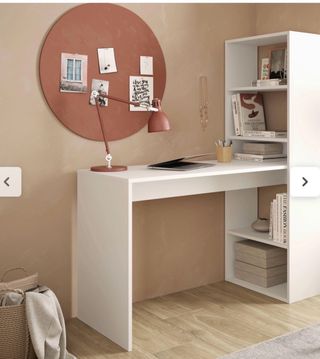 Escritorio funcional con un diseño moderno. - Estructura de madera. - Color blanco. Viene con estantería movible a izquierdas y a derechas LAS MEDIDAS ESTAN EN LAS FOTOS DEL ANUNCIO